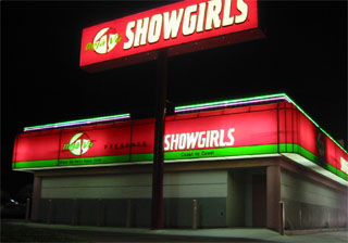 The club is easy to see from Airport Drive, but a little hard to figure out how to actually get to.  If you get lost, just keep going towards the big "Showgirls" sign or call the club for some help.  There is ample free parking and the entrance to the club is on the other side of the building.  As you enter the building, there is a adult video store to your left, which also includes 6 video booths where you can watch 100+ porno channels in a private booth. This section is free to enter.