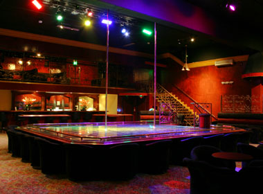 As you enter, the DJ booth is at the entrance. The bar is to the right, where they serve full alcohol. The chair dance area is near the front of the club (to the extreme right). The one large stage is in the center of the club with plenty of brass poles (vertical and horizontal), but the infamous spinning ring is now gone. The stage seats about 30 customers. The bathrooms, kitchen, payphones, ATM machine, 2 pool tables, change machine and dressing rooms are toward the back of the club.