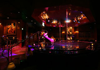 ![]() Bar to the left, stage with poles in center of the room, lap dance area on far side |